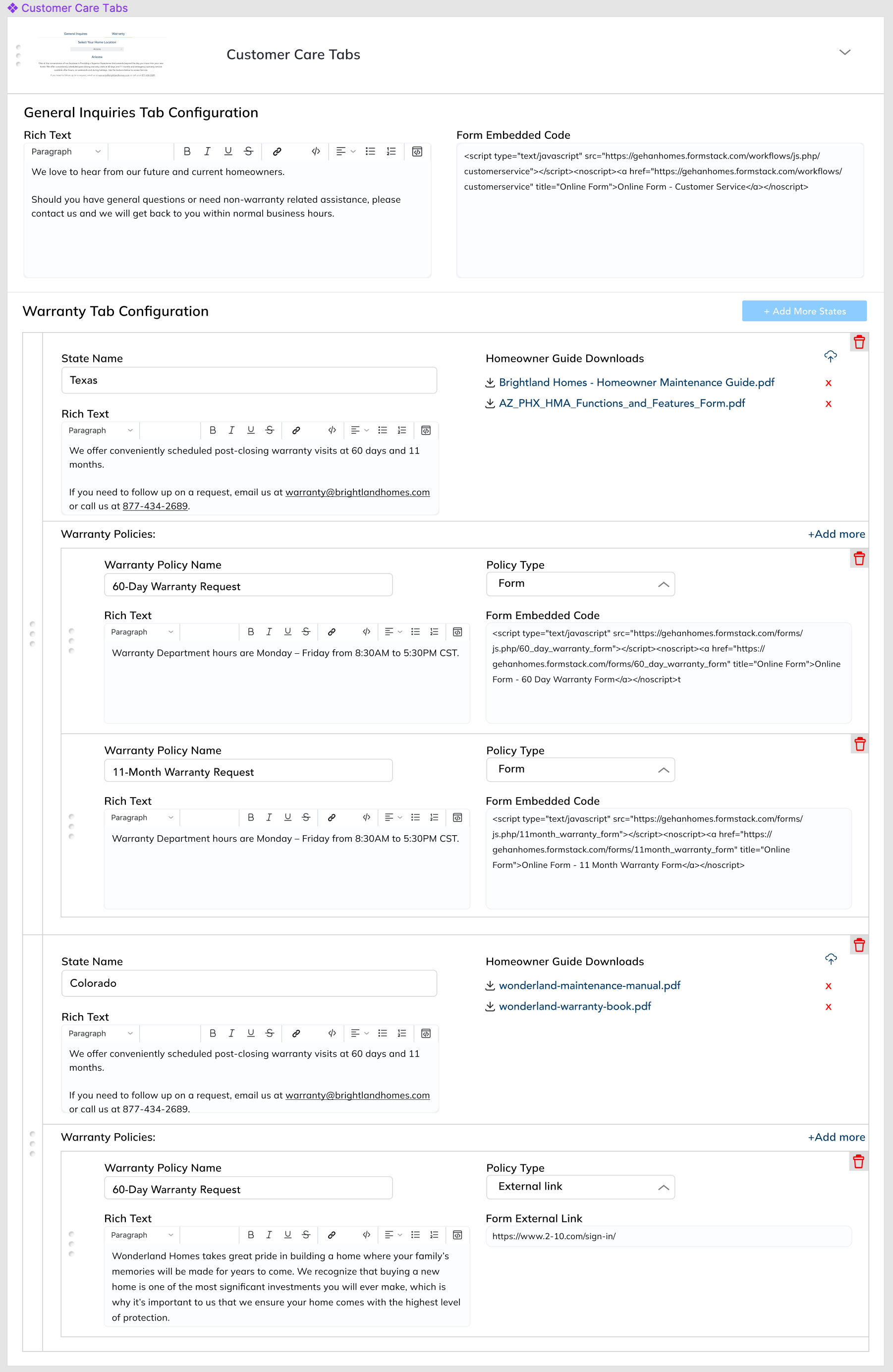 For each state, user can upload "Homeowner Guide" PDFs.