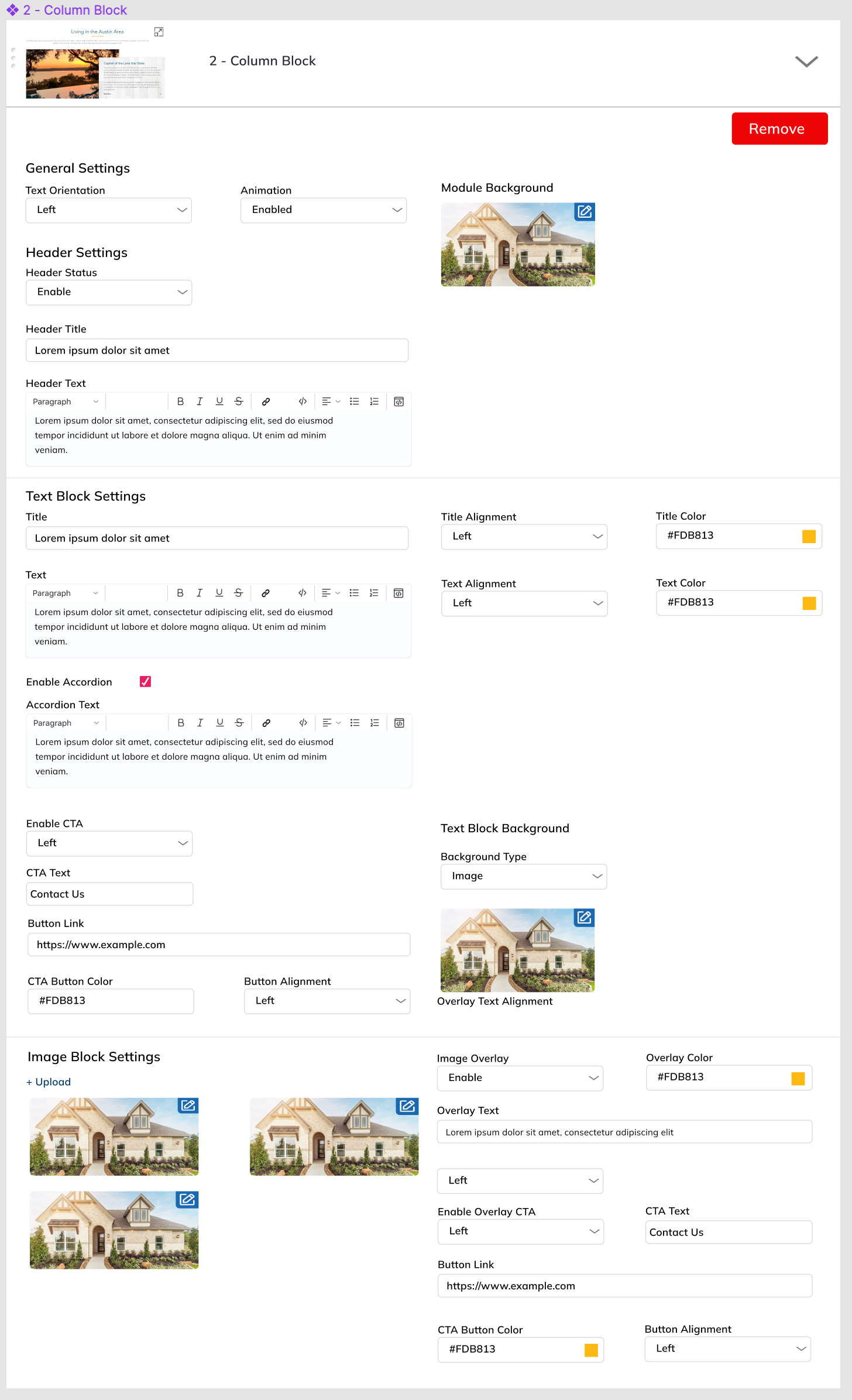 Fully customizable multi-functional block of 2 Columns and optional header.
