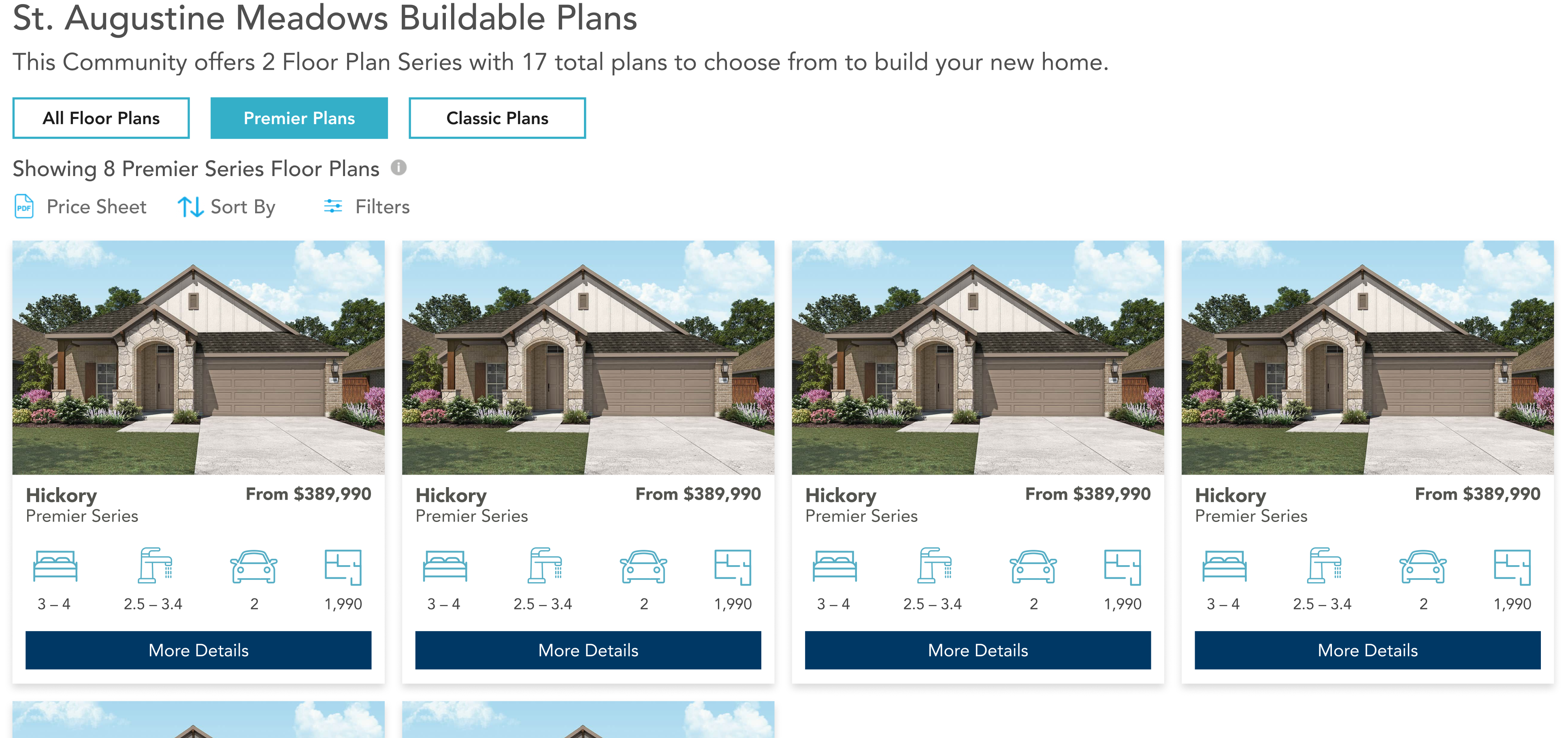 Floor Plans can be grouped by Series (if Community has more than 1 Series).