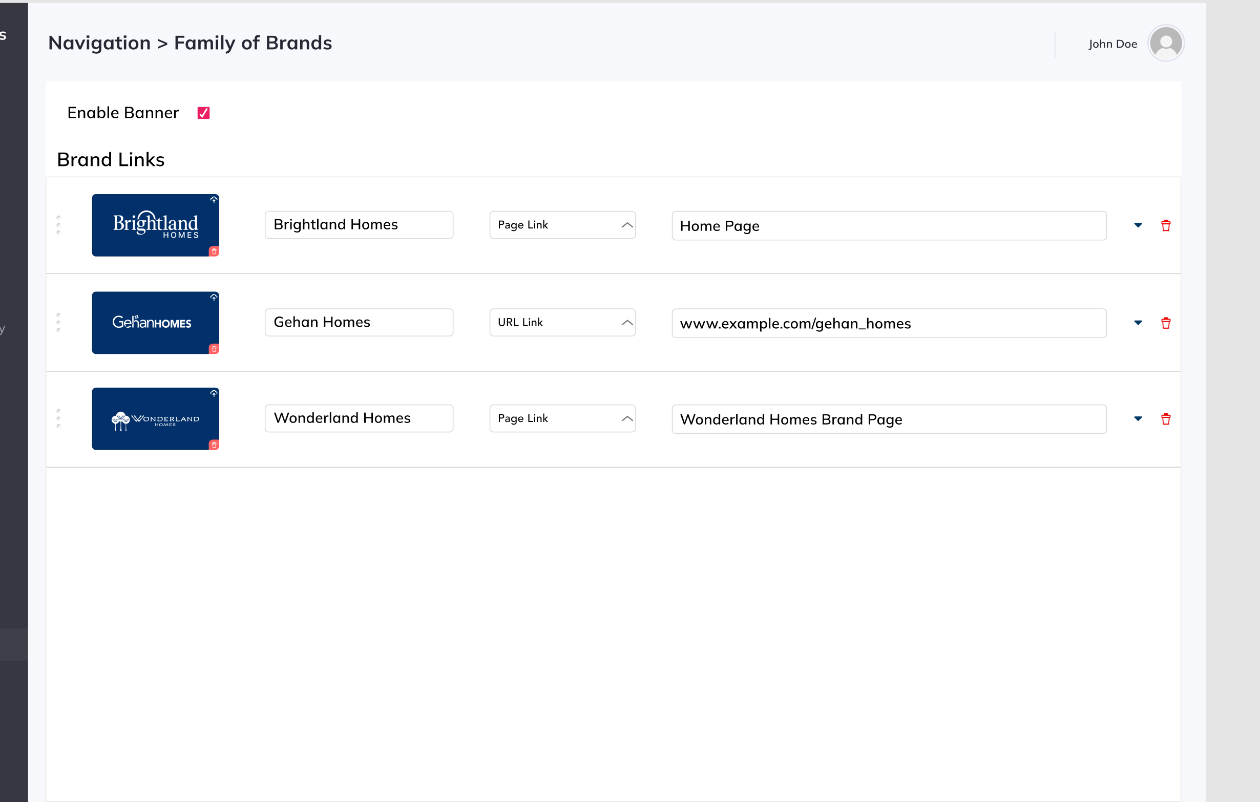 User can add/remove brand links / logos to the optional banner.