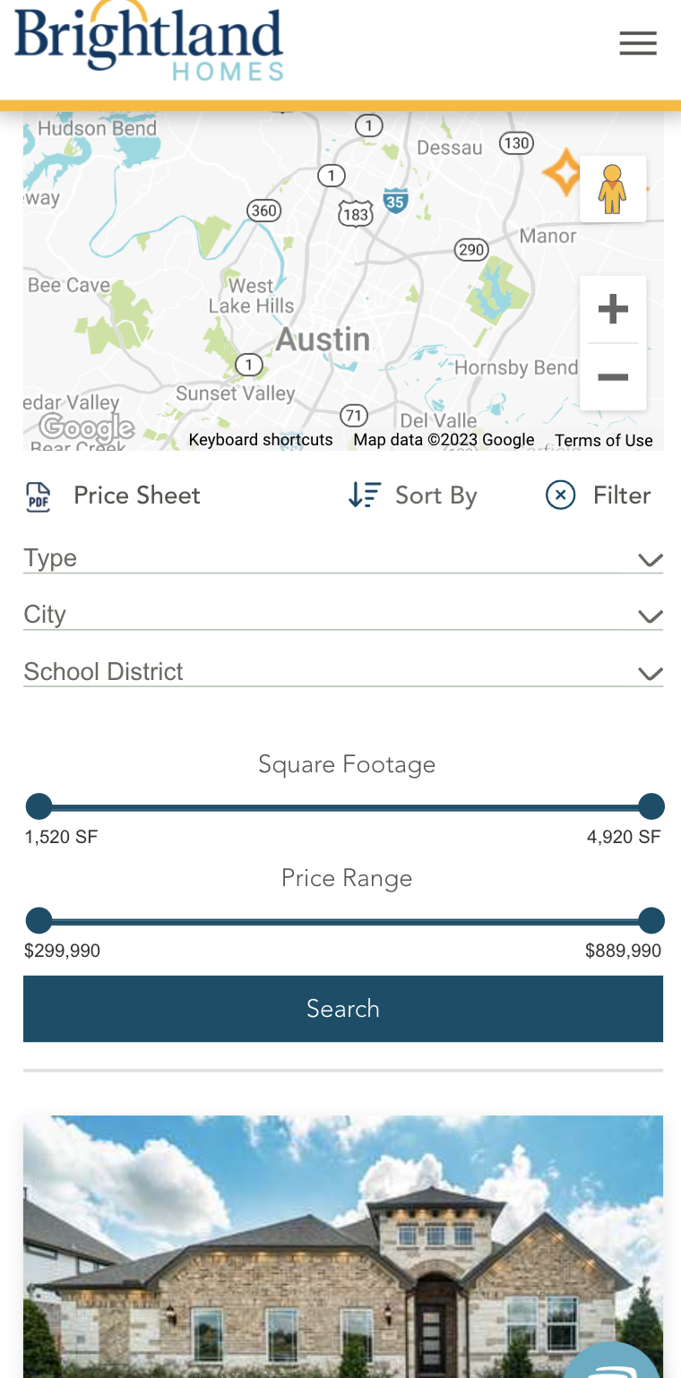 Range, based on current inventory available. (Min/Max Square Footage) Slider.