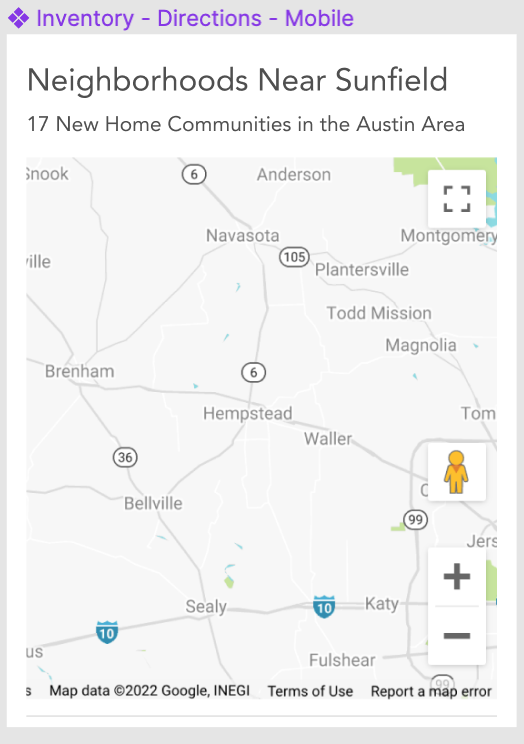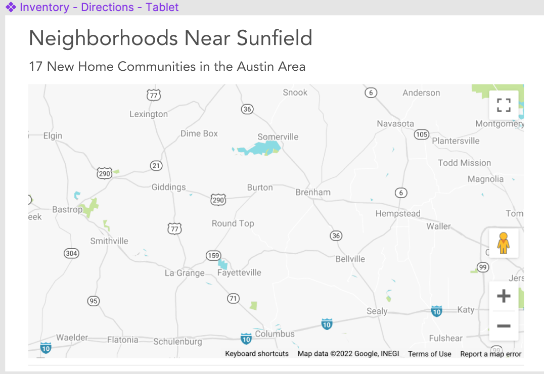 Map is pulled from Google Cloud account + local communities overlay icons for division communities.