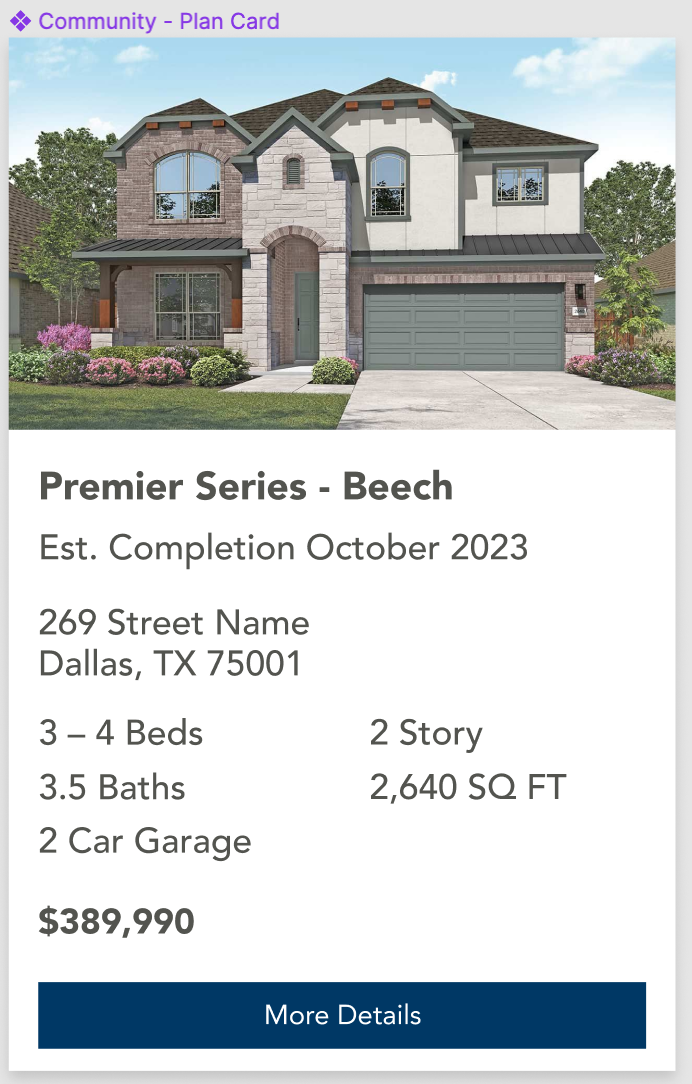 Contains heading in this format: "[Community Name] Quick Move-in Homes"