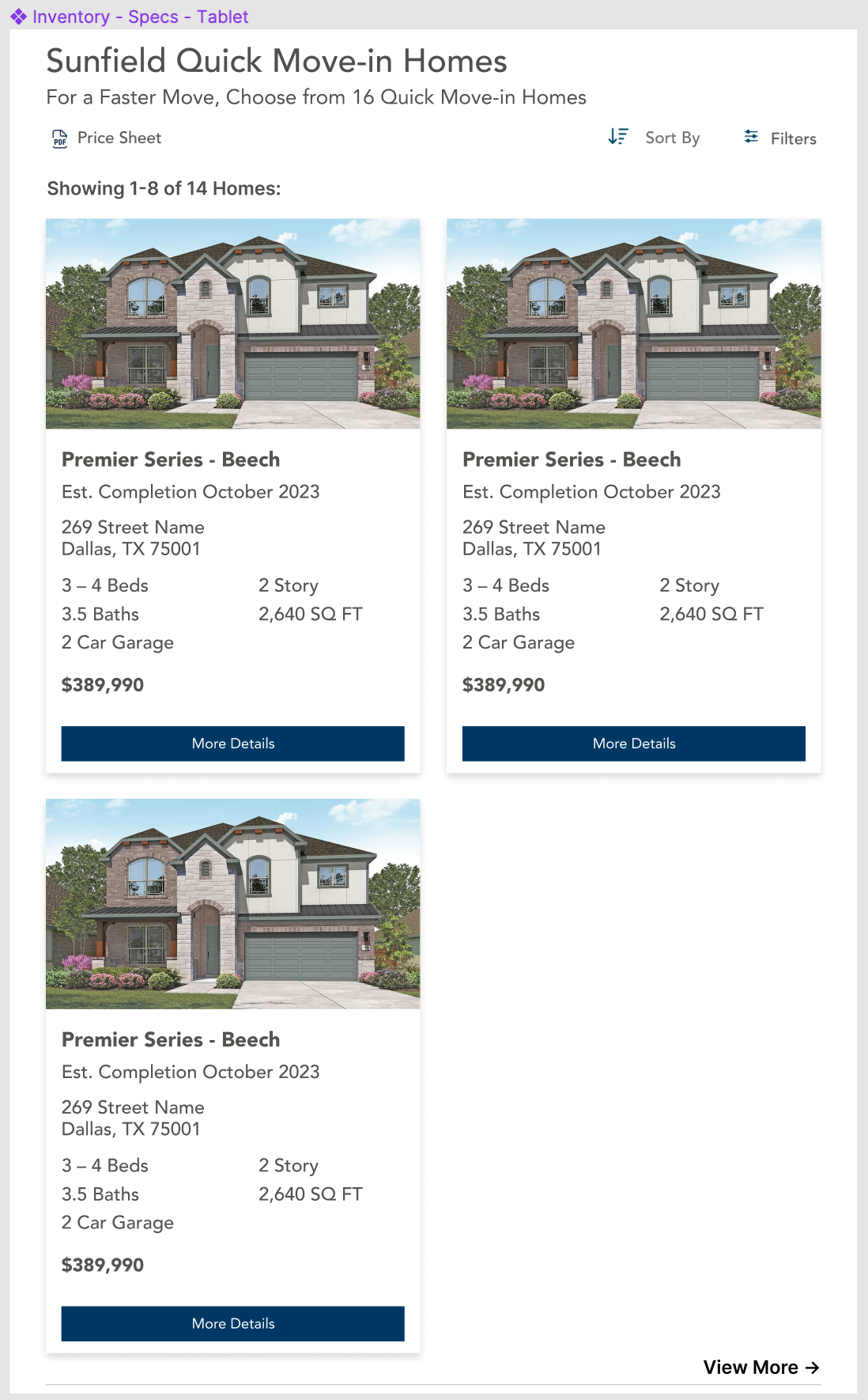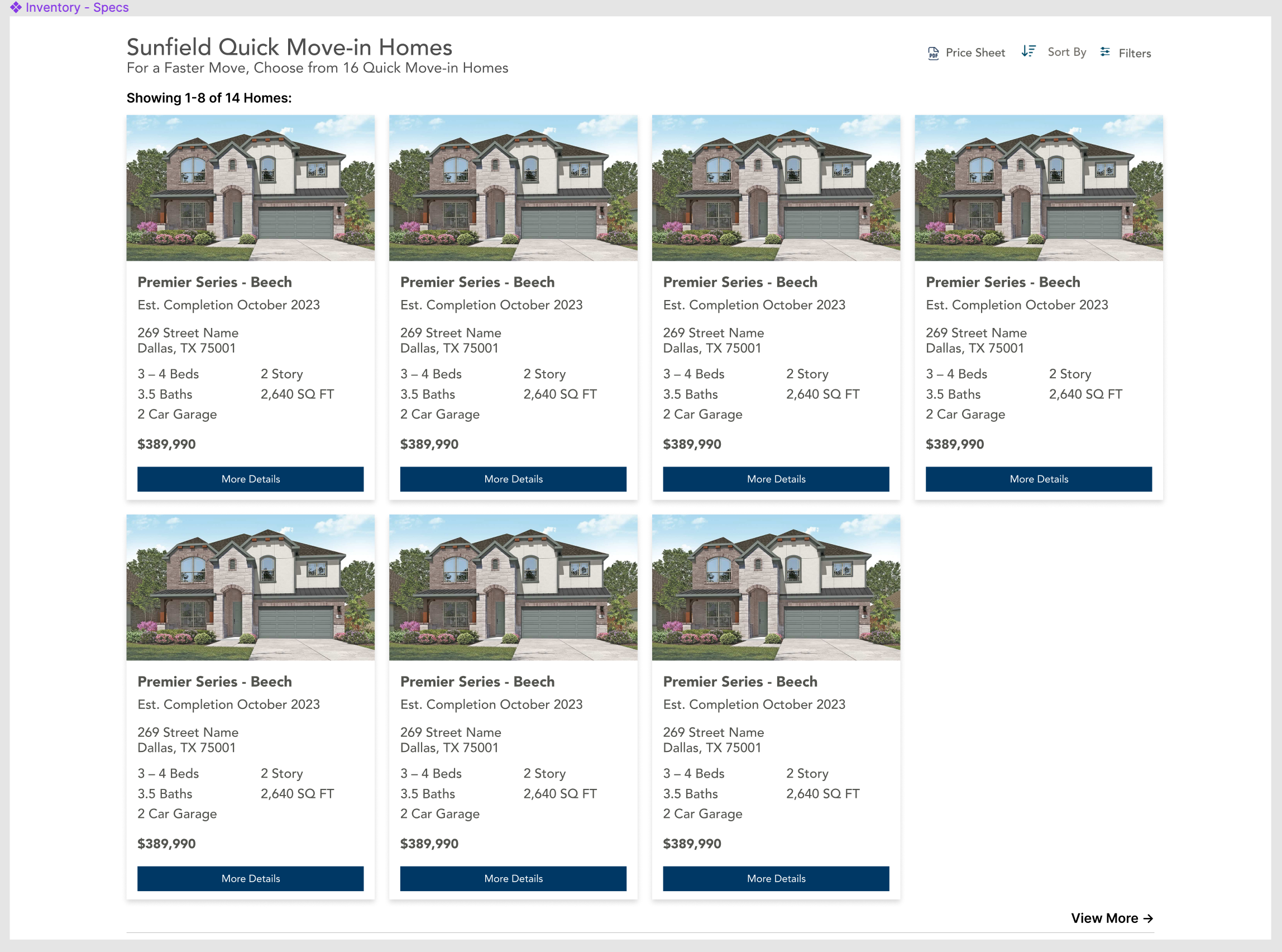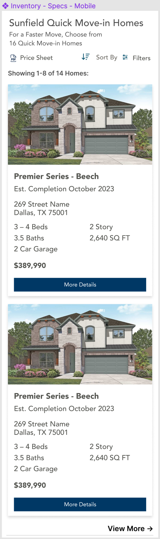 Subheading contains available spec homes count: