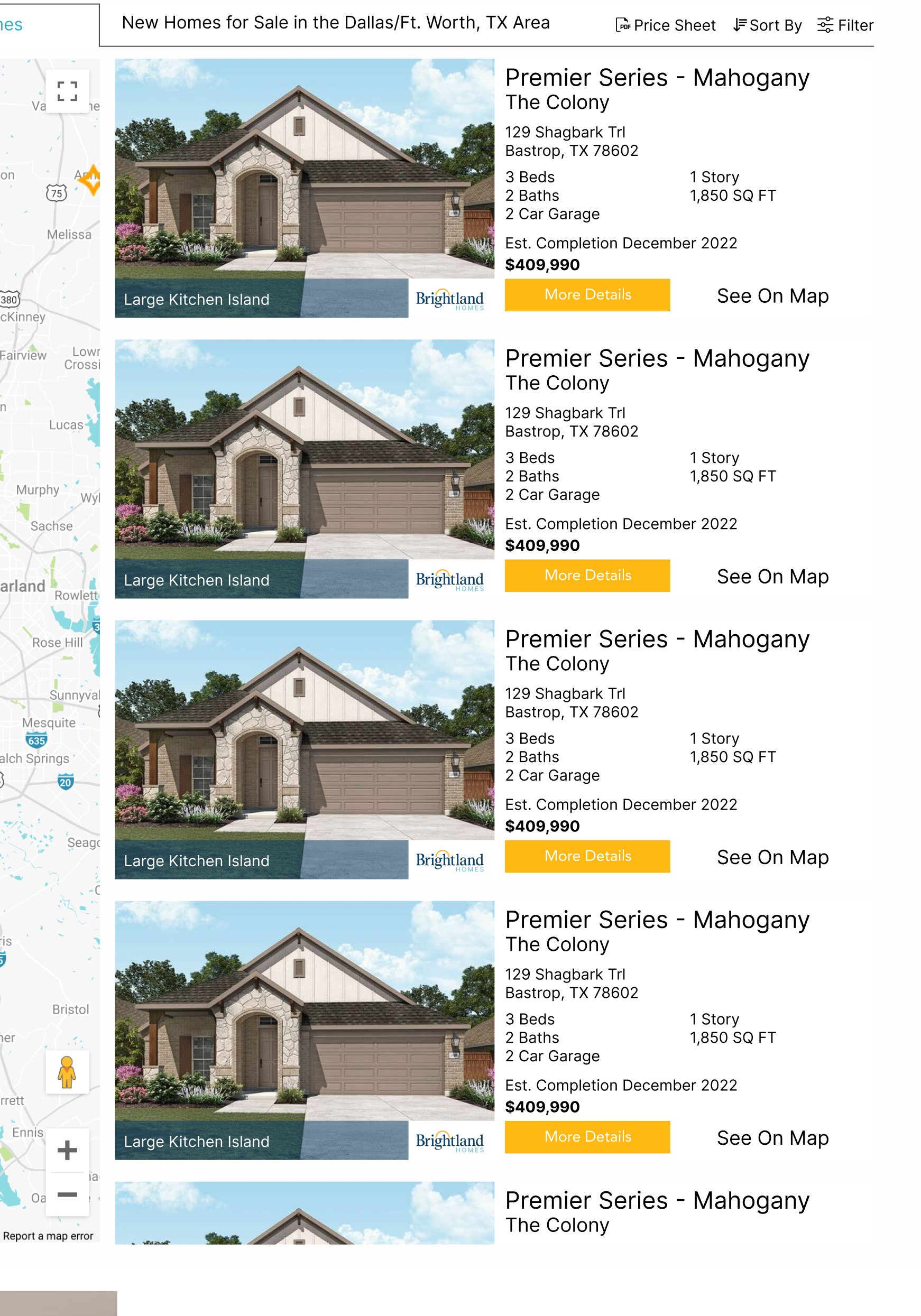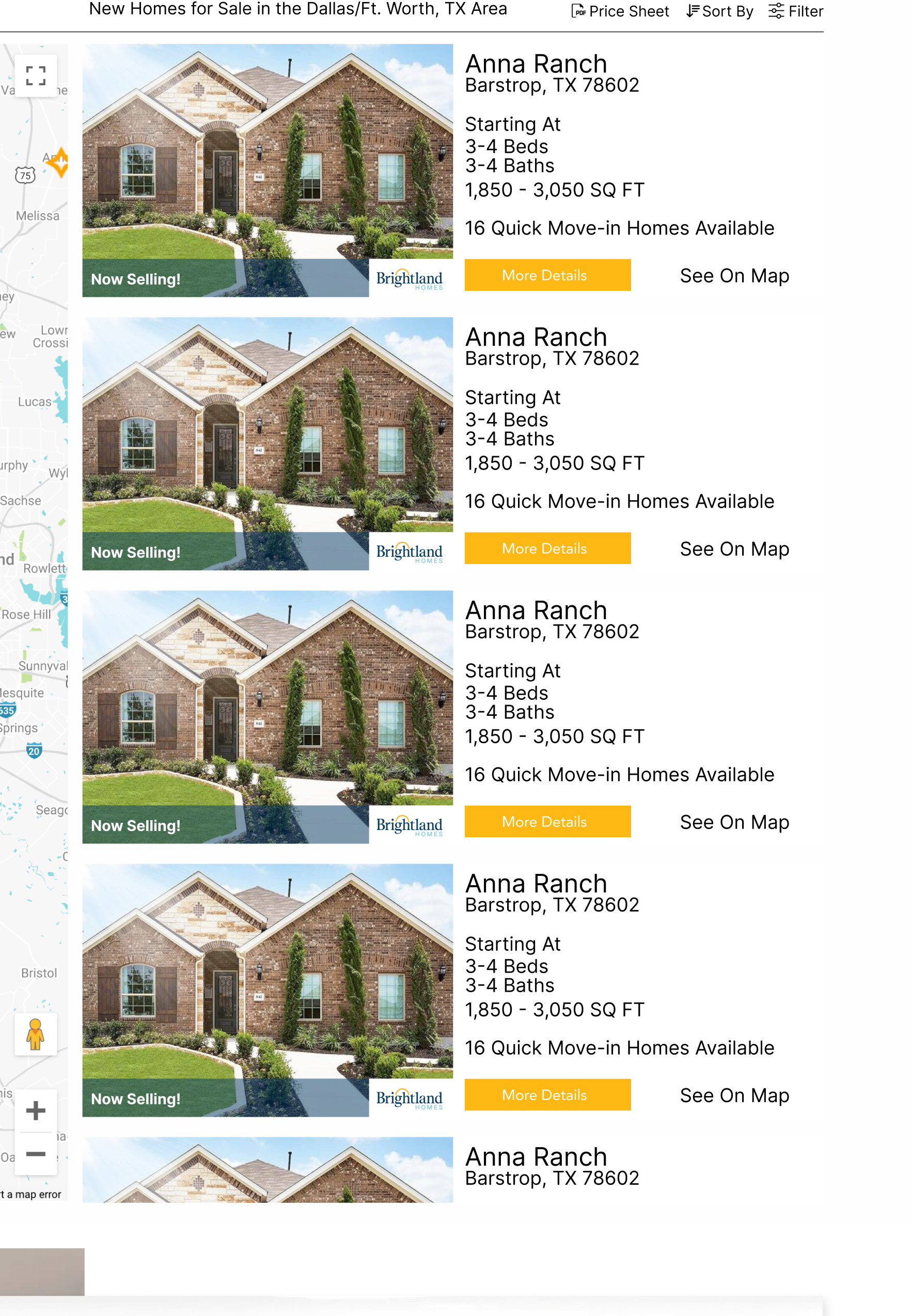 User can user Tabs from module Header to switch between the list of Communities and list of Spec homes.