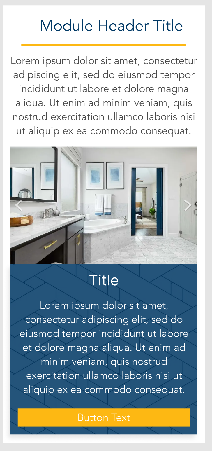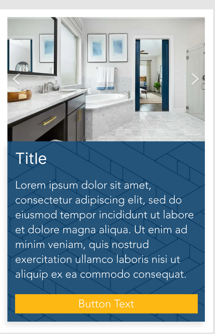 Image can be single or multi-image slideshow. Image can have a text overlay with optional button.