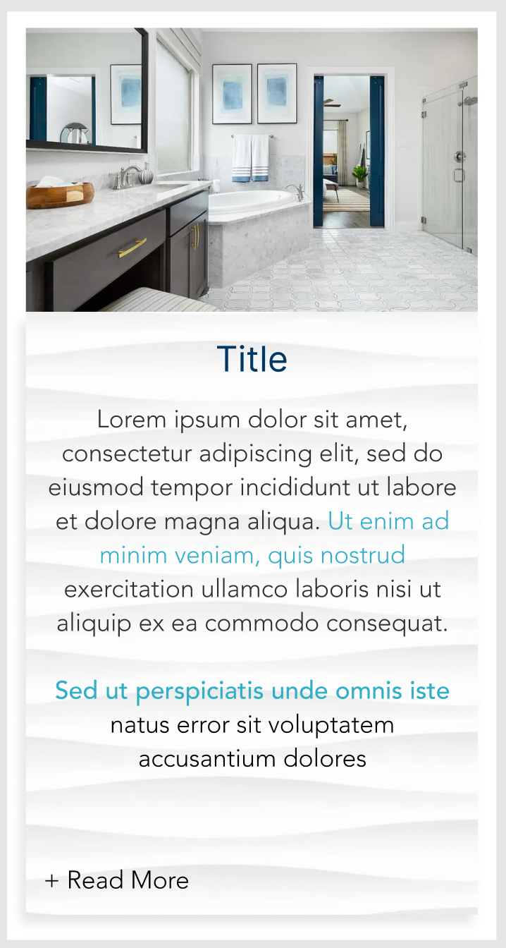 Standard text. Image block with Text overlay + CTA:
