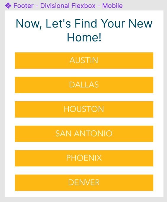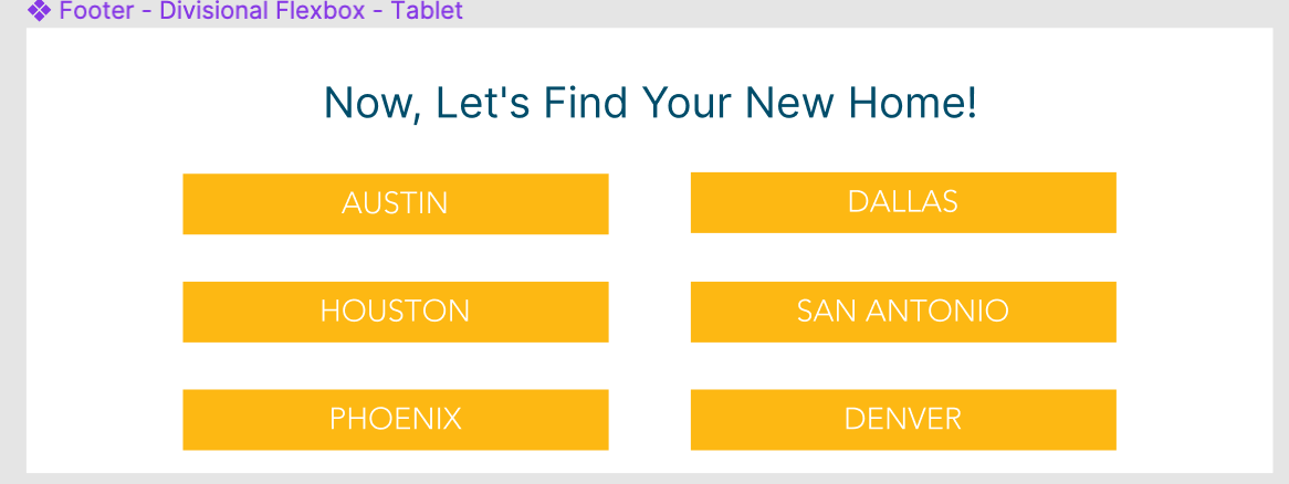 ComponentsStatic / GenericCTA BlockOn this pageCTA BlockDescriptionCMS logic described HERE.Edit TitleSet title font colorAdd links (Min 1 - Max of 8)Change button colorButton text colorAdd link URL destinationExampleDesktopTabletMobile